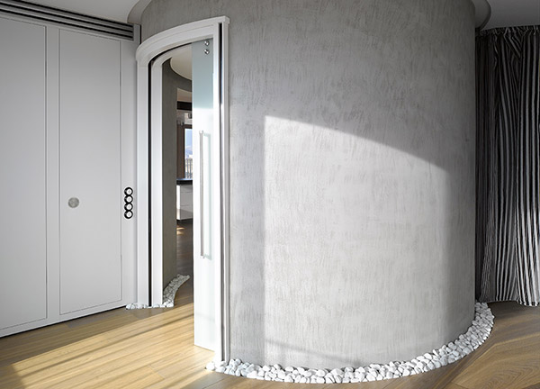 С ECLISSE Circular Unico вы можете установить пенал для раздвижной двери внутри изогнутой поверхности.