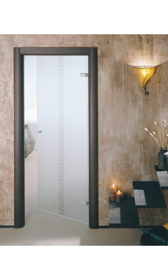 Epsilon. Гладкие изделия минималистского дизайна выпускаются в оттенках мербау, морёный дуб, дуб антик, орех. В качестве отделки для тёмной распашной двери выбрана полипропиленовая плёнка с текстурой под дерево, и т. д.